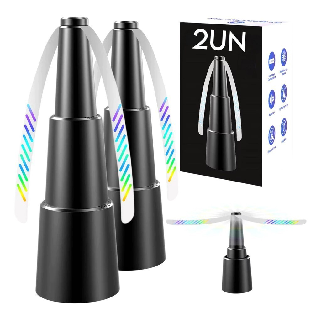 ✔️ Pontas holográficas nas pás – confundem as moscas e afastam sem matar
